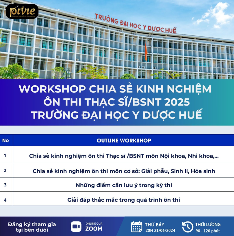 [Pivie - SỰ KIỆN CỘNG ĐỒNG] Workshop Chia Sẻ Kinh Nghiệm Ôn Thi Thạc Sĩ/BSNT 2025 tại Đại học Y Dược Huế