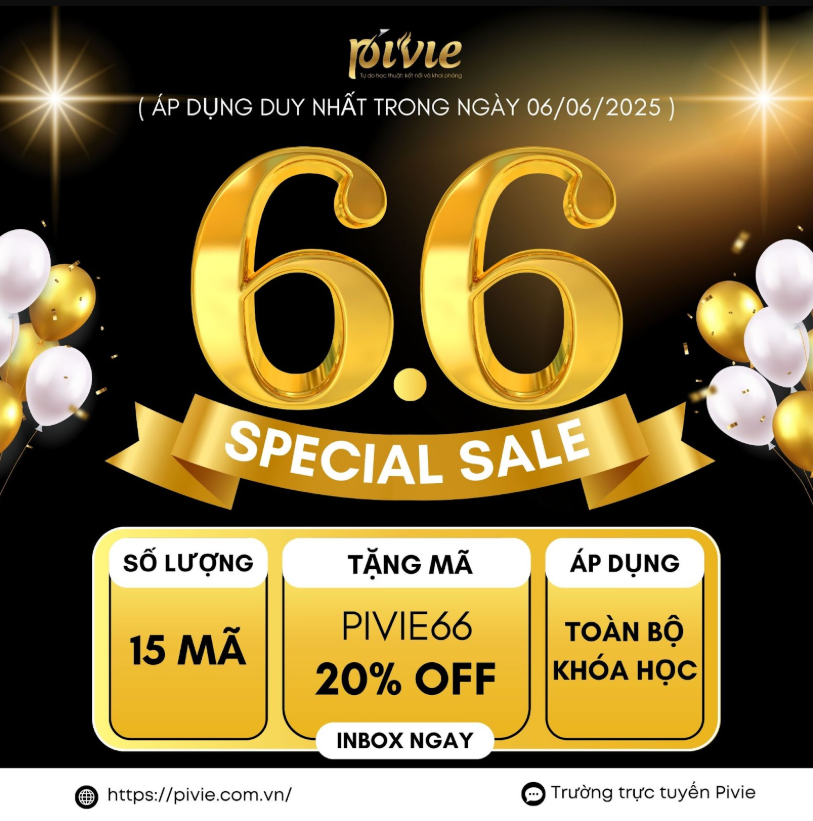 Trường trực tuyến Pivie trân trọng gửi đến Quý Anh/Chị chương trình 6.6 Special Sale, nhằm đồng hành và hỗ trợ quá trình ôn thi Sau đại học một cách hiệu quả và tiết kiệm hơn.